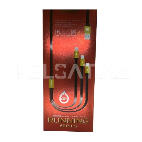 Müxtəlif Şarj Portları: A-C27 kabelinin 3 fərqli portu var: Micro USB, USB Type-C və Lightning. Bu, fərqli portlara sahib cihazları eyni anda şarj etməyə imkan verir.
