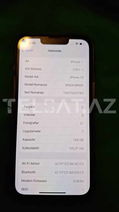 Salam. İPhone 13 128GB Green Satılır. Rəsmi mağazadan alınıb. 2024 May ayında aktiv edilib. 3 ayın telefonudur. Telefon alındığı gündən orijinal ekran və orijinal arxa qoruyucuda istifadə edilib. Heç bir cızığı falan yoxdur. Xanım istifadəsində olub. Satılma səbəbi uzun illər Android istifadə edildiyi üçün iOS sisteminə öyrənilə bilmədi. Rəsmi 2 illik qızıl zəmanəti var. Qiymətdə cüzi endirim olacaq. Qiymət barəsində əlavə fikirlər bildirməyin xahiş edirəm. Rəsmi zəmanəti olduğu üçün bu qiymətə satılır. İşlənməsində heç bir problemi yoxdur. Qətiyyən ustada olmayıb. Batareya 100% .