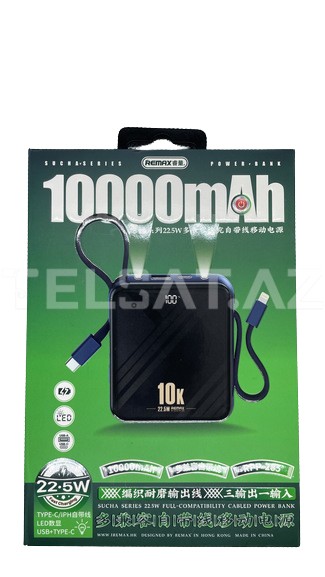 Remax RPP-285 10000mAh 22.5W Sürətli Şarjlı İncorporated Kabel Güc Bankası, kompakt və sürətli şarj imkanları ilə cihazlarınızı daima enerji ilə təmin etmək üçün əla bir seçimdir.