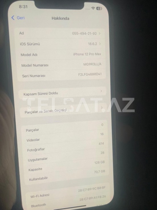 iPhone 12 Pro Max 128GB Gold | 100% Pil | True Tone | Qutulu